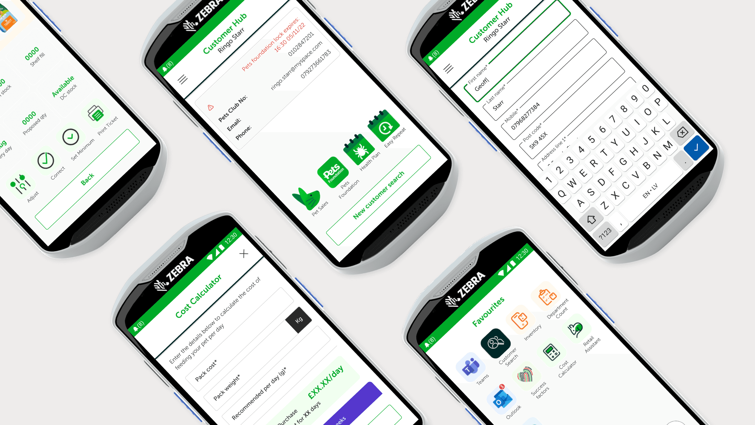 This shaped everything from the information architecture to the default behaviours. For example, the barcode scanner is the primary input method for most tasks. Scan a product and it opens directly into the inventory system. Scan a customer's Pets Club card and it takes you straight to their account.